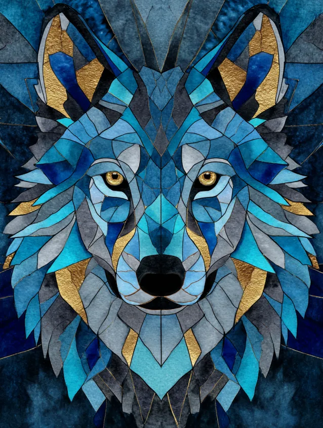 Geometric Metallic Wolf Portrait