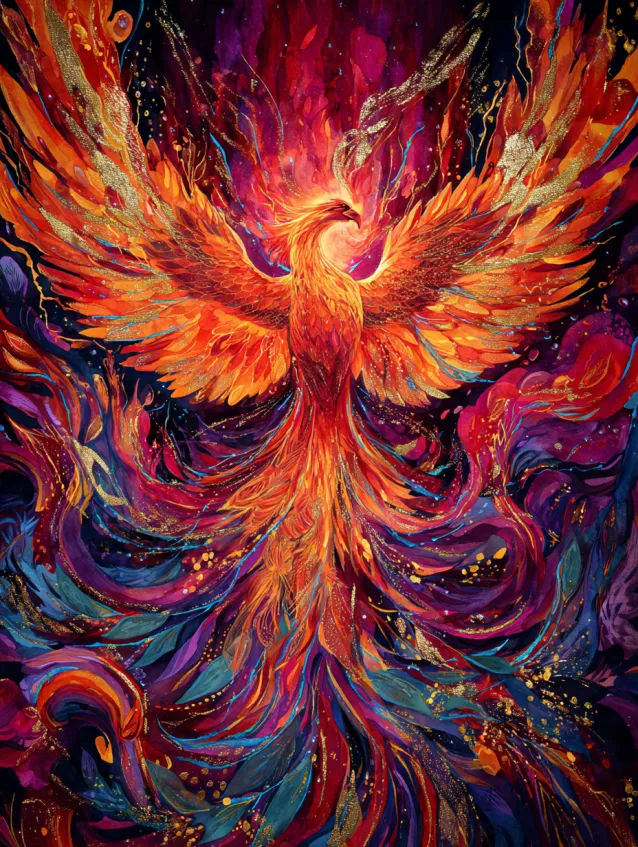 Fiery Phoenix Rising in Metallic Flames