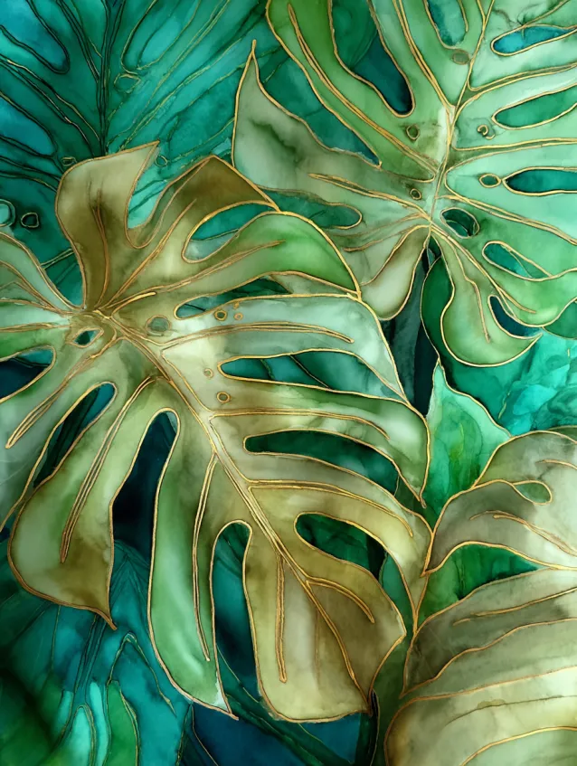 Tropical Monstera Leaves with Metallic Edges