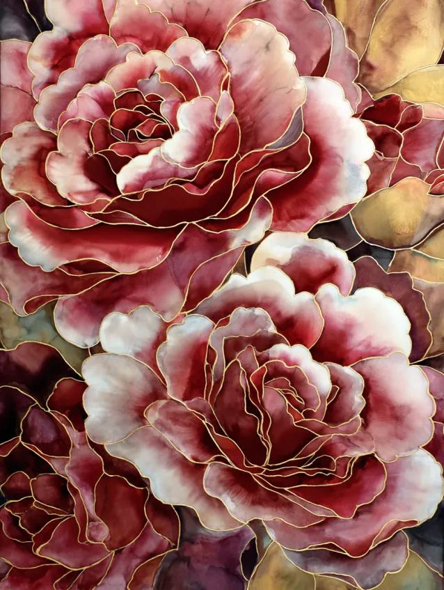 Florals like this are pure joy for me. I love building up soft petal layers and then adding delicate metallic details that make the flowers glow. It feels feminine, elegant, and wonderfully indulgent.