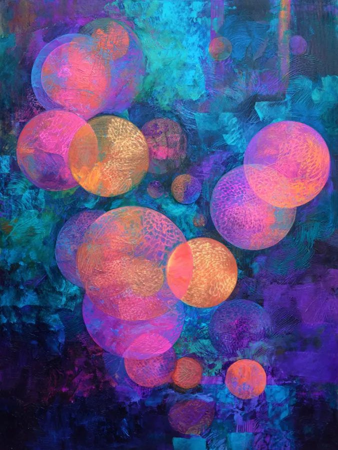 I love how peaceful this kind of painting feels while working on it. Creating the circles one by one is almost meditative. I enjoy layering soft colors and watching them glow when they overlap. It also gives plenty of room to experiment with textures in the background which keeps the process interesting. If you enjoy abstract art that feels calm and a little whimsical this floating orb design is such a relaxing one to paint. It feels creative but wonderfully soothing at the same time.