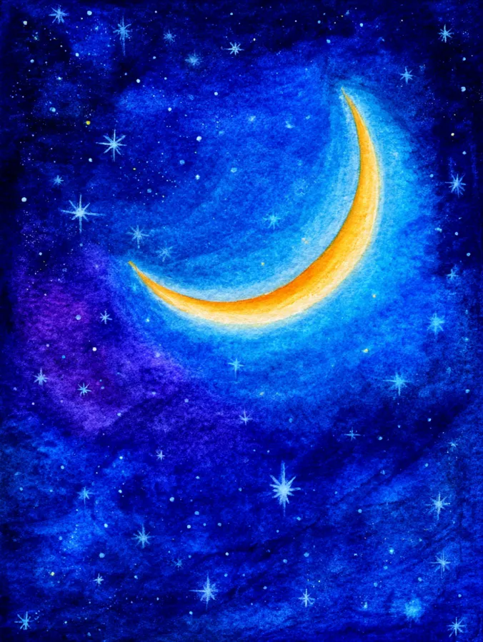 I love painting night skies like this because it feels peaceful and almost magical from the very first wash. The moon shape is simple and forgiving, which makes it great for relaxed practice. I enjoy layering blues and watching the sky slowly come to life as it dries. It feels quiet and comforting, like painting a little moment of calm just for myself.