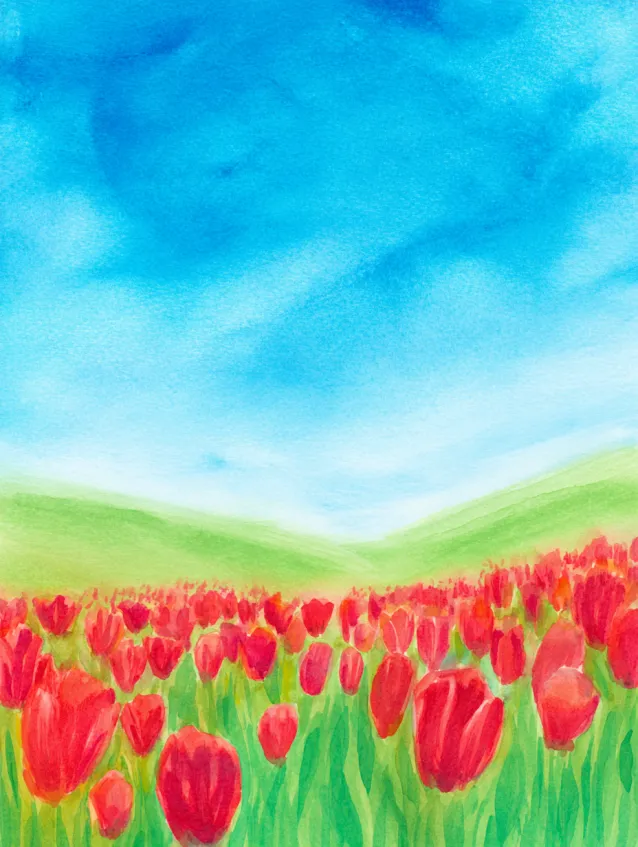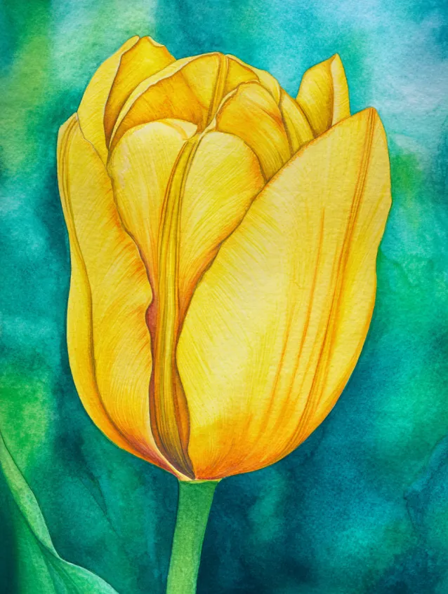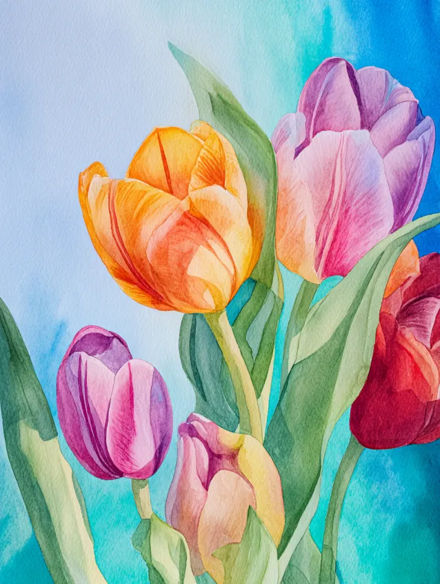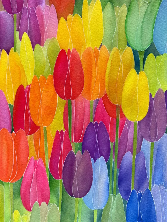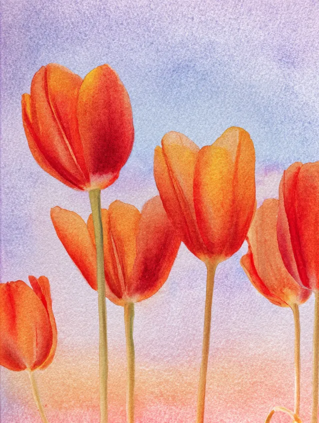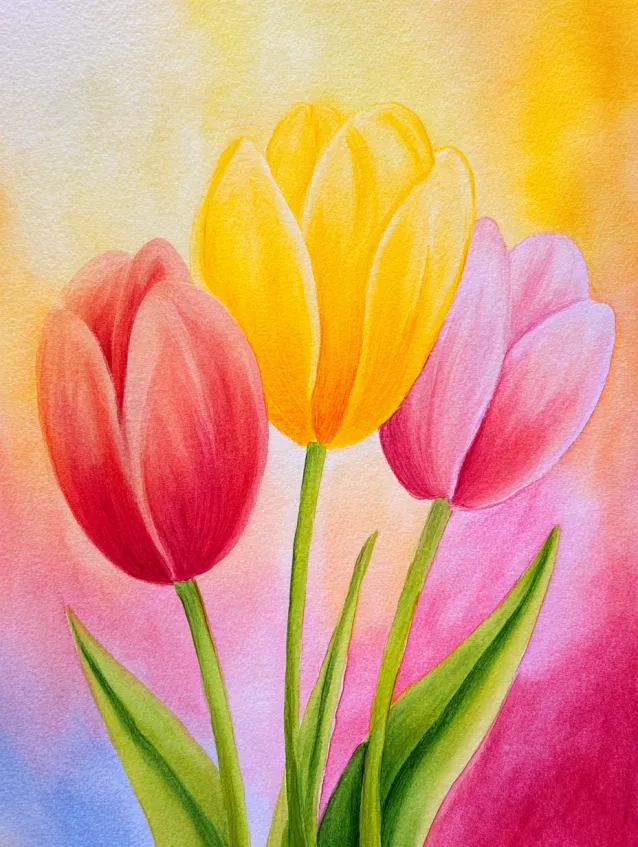 I love how energizing this palette feels. Practicing blending bright colors like this really improves control with water. It is also a nice reminder that tulips do not have to sit in a detailed landscape to feel complete. Sometimes a bold backdrop is all you need.
