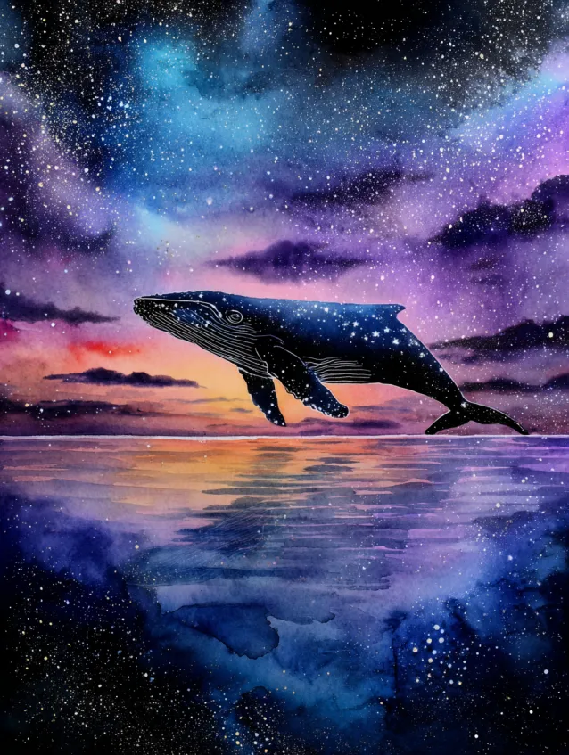 Celestial Whale Over a Reflective Ocean