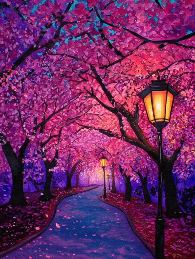 Cherry Blossom Path at Dusk