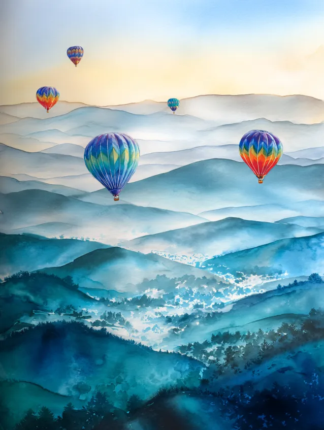 I love how simple yet uplifting this kind of scene feels. Painting those hazy mountain layers is incredibly relaxing, and then adding colorful balloons brings instant joy. It is the perfect balance between calm and playful.