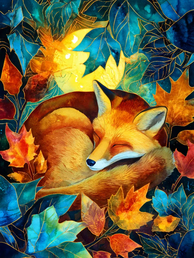 Cozy Autumn Fox Among Golden Leaves