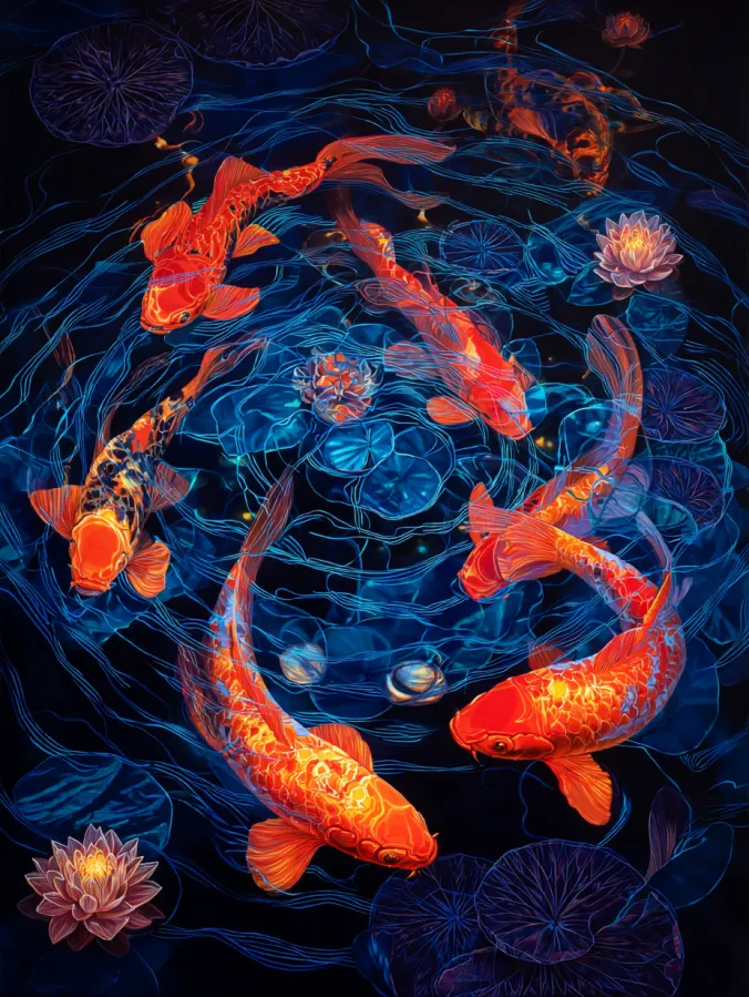 Glowing Koi Pond With Lotus Flowers