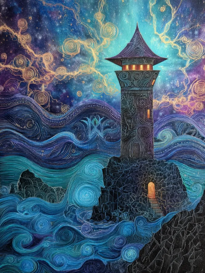Mystic Lighthouse In A Cosmic Ocean
