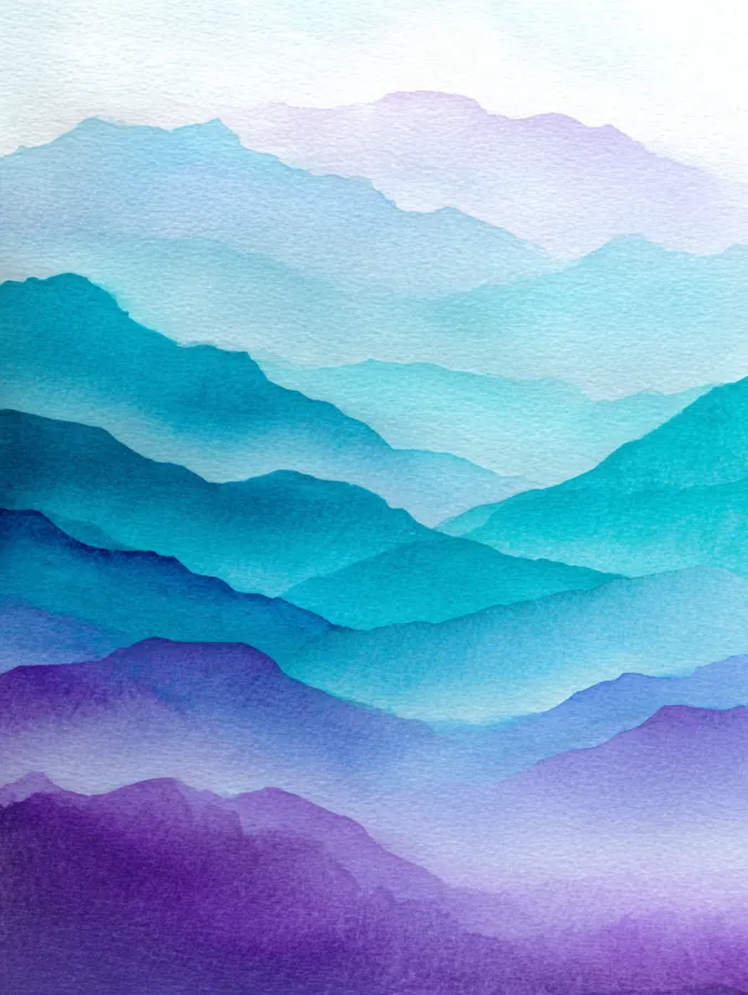 Misty Blue Mountain Layers Watercolor