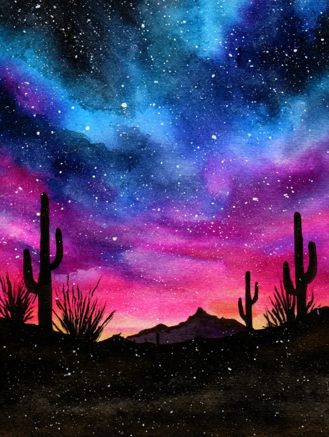 Starry Desert Night Watercolor
