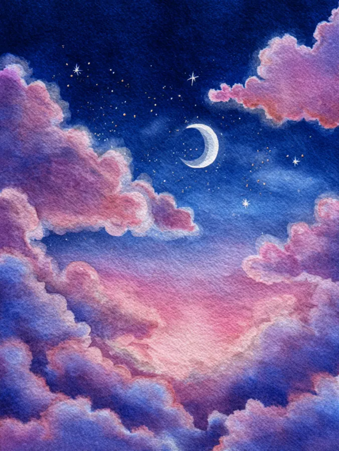 Dreamy Crescent Moon Sky Watercolor