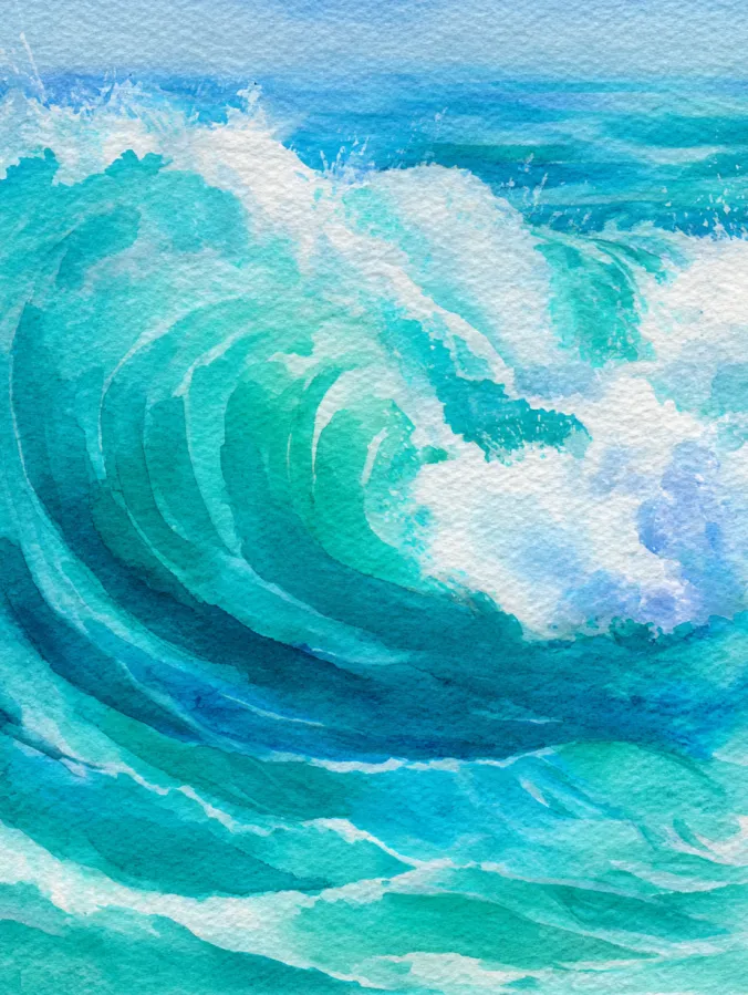 Turquoise Ocean Wave Watercolor