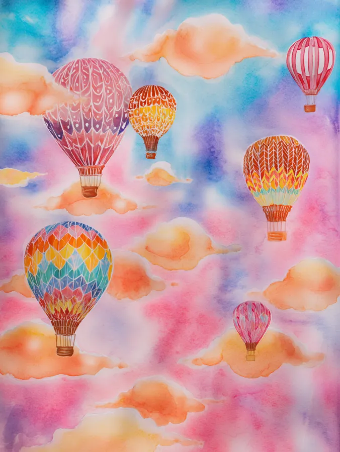 Whimsical Hot Air Balloon Sky Watercolor