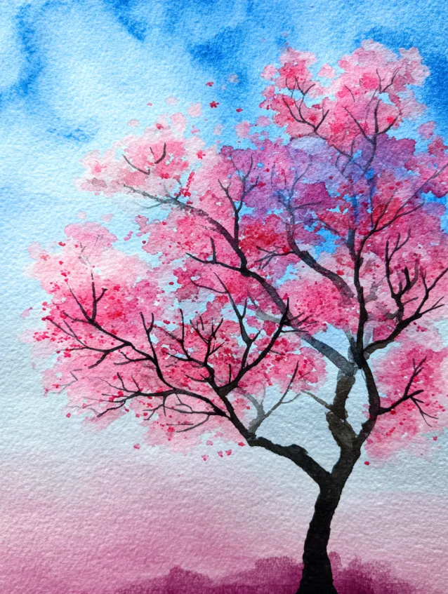 I always feel calm when I paint blossom trees like this. The soft pink tones are soothing, and the blossoms can be created with loose dabs and light layering. It is such a lovely reminder that beautiful results do not require complicated techniques.