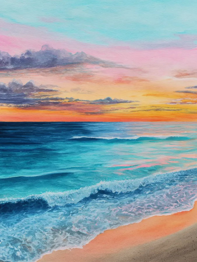 I love this kind of painting because it feels instantly soothing but still teaches so many useful skills. Playing with sky gradients and water blends is incredibly relaxing, and there is no pressure to make everything perfect since oceans are forgiving and expressive by nature. It is one of those projects where I can zone out, enjoy the colors mixing on the paper, and end up with something that looks impressive even at a beginner level. Perfect for those days when I just want to paint, breathe, and enjoy the process without overthinking it.