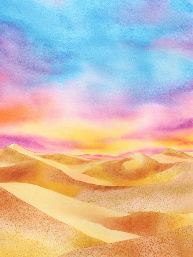 I love how relaxing this kind of painting feels because there is zero pressure to add detail. Painting dunes is all about simple shapes and smooth color transitions, which makes it perfect for slowing down and enjoying the moment. If you are into soft color palettes and gentle blending, this one is such a treat. I find it really soothing to let the sky and sand melt together and watch the scene quietly come to life on the page.