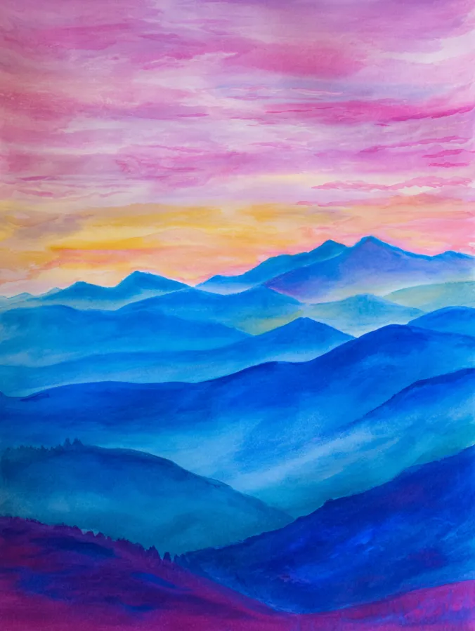 I really love paintings like this because they feel peaceful without needing tons of detail. Building up soft layers and letting the colors blur together is incredibly relaxing. If you enjoy slow painting sessions where you can focus on mood instead of perfection, this one is such a joy. I always find myself unwinding as the misty hills appear, almost like watching the day wake up right on the page.