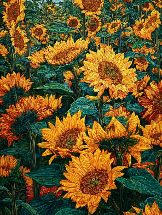 Sunflowers always make me smile. Their bright petals and sunny energy feel like pure happiness on a canvas.