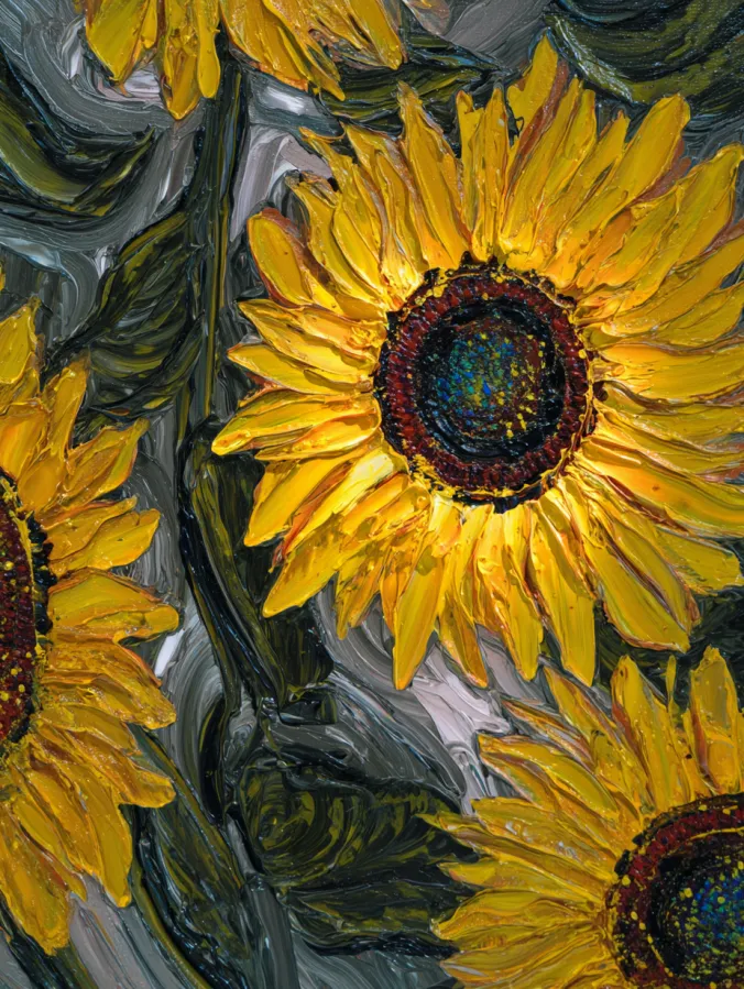 Textured Sunflowers With Bold Palette Knife Strokes