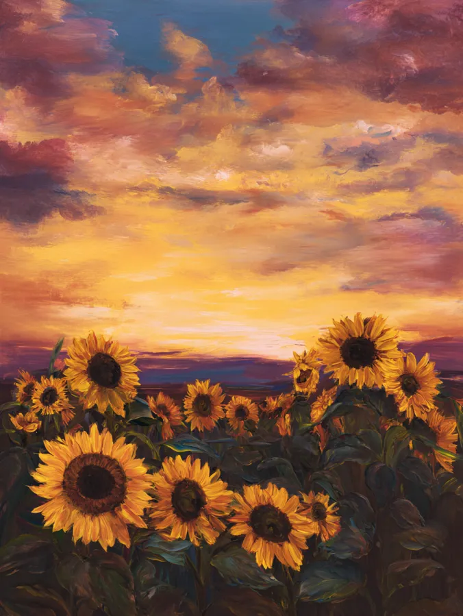 Sunflower Meadow Beneath a Dramatic Colorful Sky