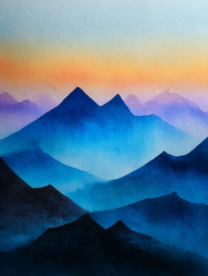 Some people love dramatic detail, but I really enjoy how peaceful this one feels to paint. I can take my time layering each mountain shape and watching the colors fade into each other naturally. Painting the sun is especially satisfying because it instantly becomes the focal point without needing much effort, and the whole process feels relaxing in that slow quiet way watercolor does best.