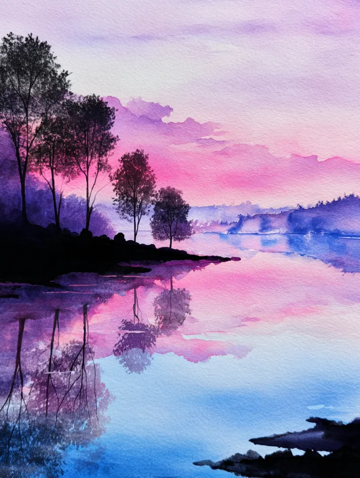 I love this kind of painting because it feels peaceful from start to finish. Playing with reflections is surprisingly relaxing since loose brush strokes actually make it look more natural. I can focus on blending the sky first and then have fun pulling those same colors down into the water. It feels calm and dreamy and it always turns into one of those paintings that looks more impressive than the effort it takes. Perfect for an evening painting session when I just want to unwind and enjoy the process.