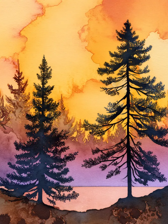 Pine Tree Silhouettes at Golden Hour