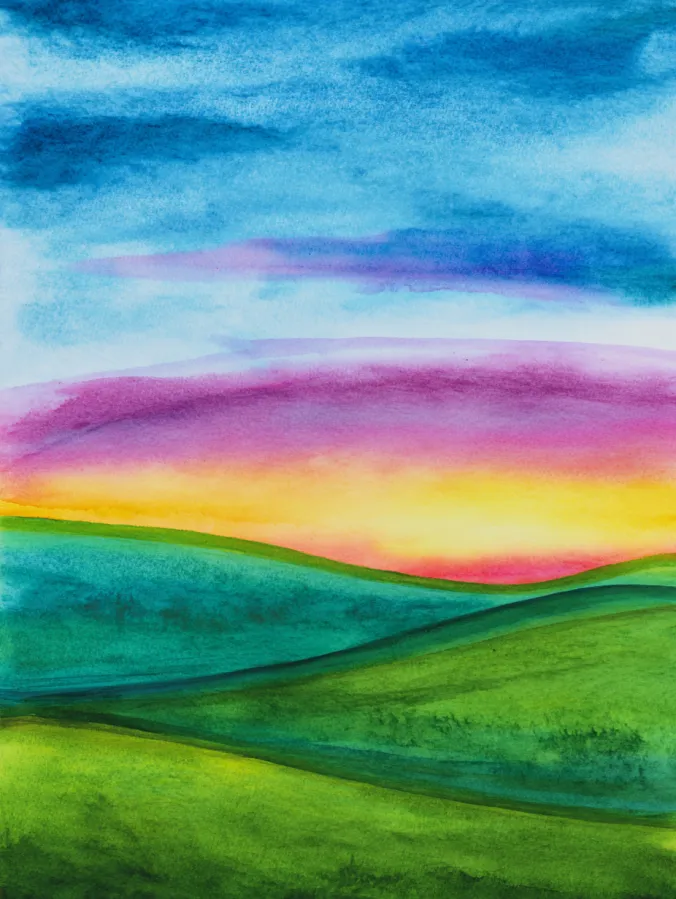 I really enjoy paintings like this because they feel freeing and forgiving. The shapes are simple, which makes it perfect for relaxing and just enjoying how the colors blend together. I love focusing on smooth washes and letting the sky do its thing without overthinking details. It is one of those paintings that feels almost meditative, and it always leaves me feeling lighter and more creative when I am done.