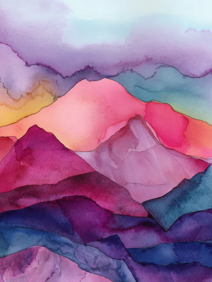 I love painting abstract mountains like this because it feels creative without feeling stressful. There is no pressure to make things look realistic, which makes it perfect for relaxing and just enjoying the colors. I find it really soothing to layer washes and watch how the edges blend on their own. It is one of those paintings where you can truly slow down, trust the process, and end up with something that feels peaceful and pretty every time.
