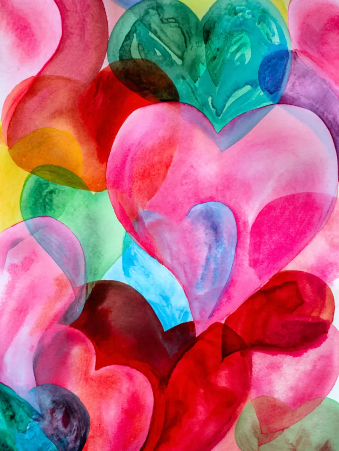 Layered Watercolor Hearts With Playful Transparency