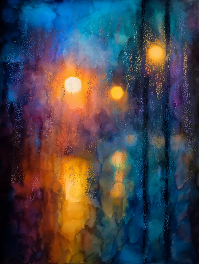 Moody Watercolor Lights Through Rain