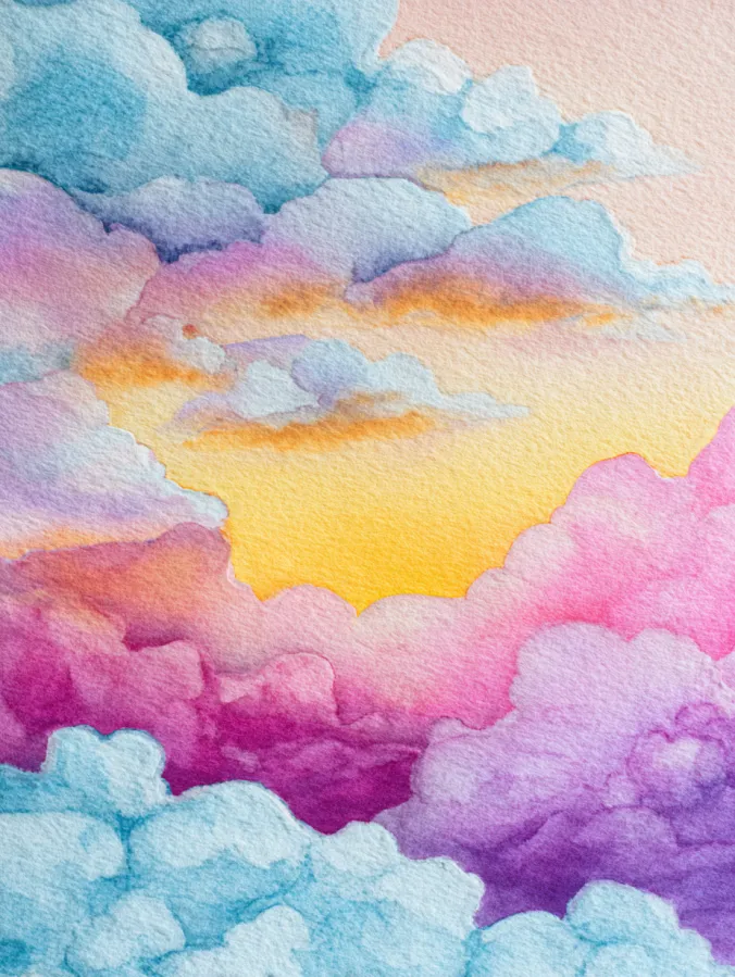Dreamy Watercolor Cloudscape in Pastel Colors