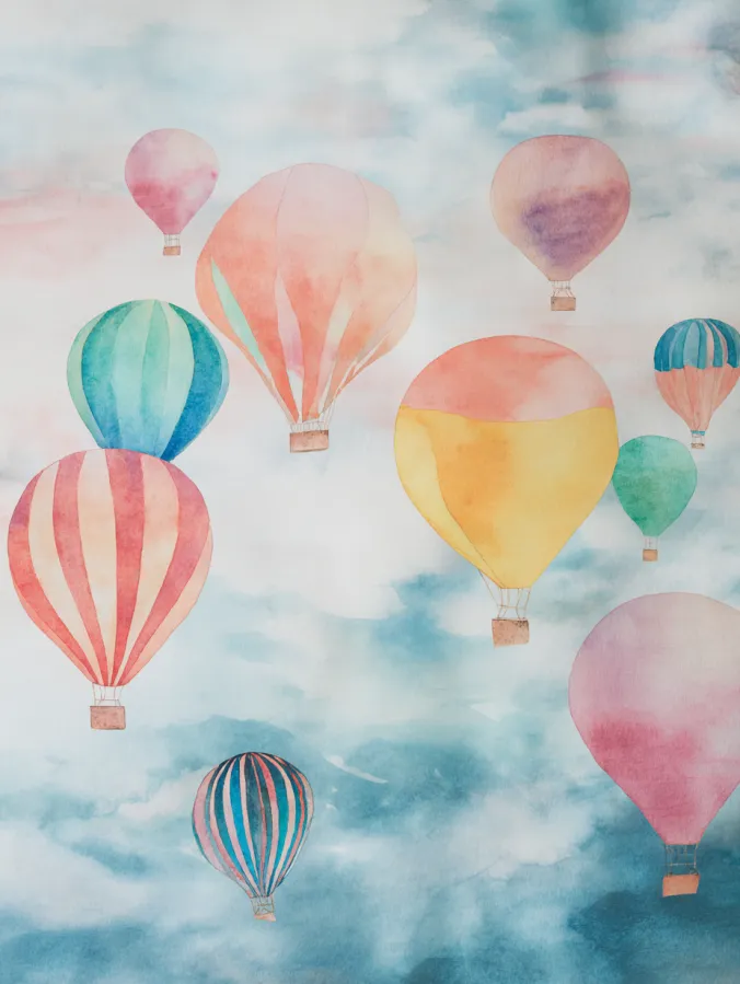 Soft Watercolor Hot Air Balloons in the Sky