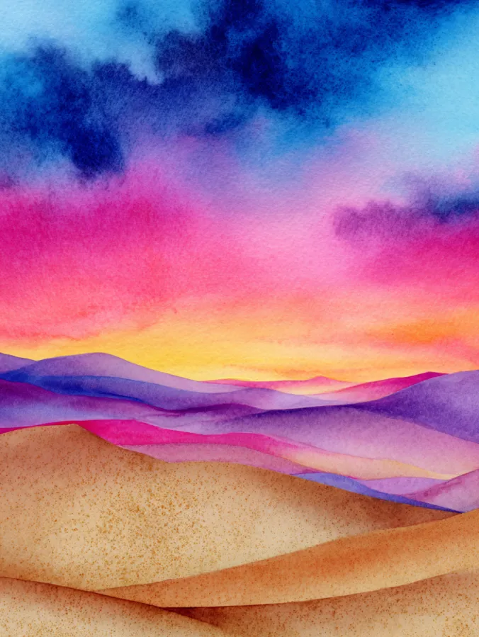 Soft Watercolor Desert Landscape at Sunset