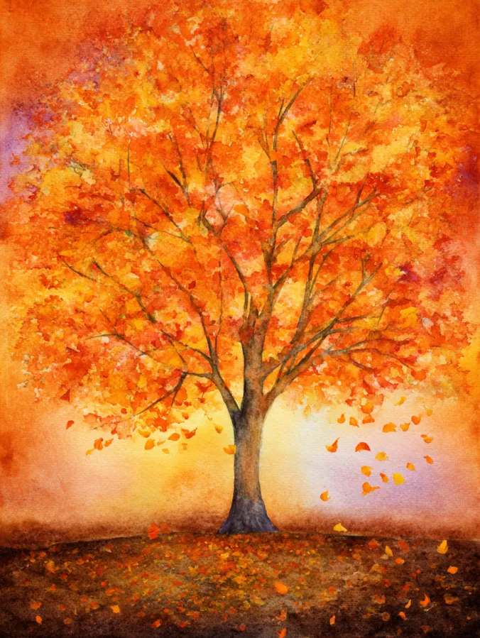 Glowing Watercolor Autumn Tree